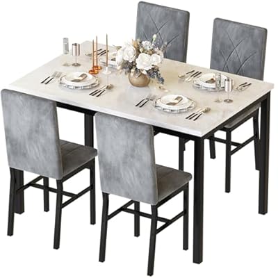 Shintenchi 5 Piece Patio Dining Set, Wicker Patio Conversation Set with Wood Table Top, Outdoor Table and Chairs with Soft Cushions for Backyard, Deck and Garden, Brown Rattan