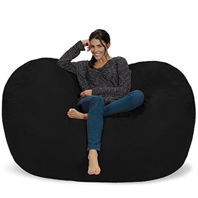 Lumaland Luxurious Giant 6ft Bean Bag Chair with Microsuede Cover – Ultra Soft, Foam Filling, Washable XL Bean Bag Sofa for Kids, Teenagers, Adults – Sack Chair for Dorm, Family Room – Navy Blue