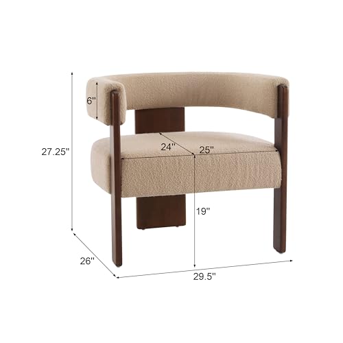 Christopher Knight Home Nettie Modern Accent Chair for Living Room, Boucle Fabric Single Lounge Sofa Chair with Wooden Frame, Comfy Reading Chair for Bedroom, Lounge Armchair with Cushion, Dark Beige