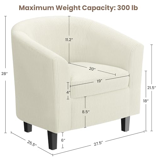 Yaheetech Corduroy Barrel Chair, Upholstered Club Accent Chair, Round Armchair with Soft Cushion for Living Room Bedroom Reading Waiting Room, Beige